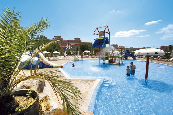 luxusný hotelový komplex, nachádzajúci sa v rekreačnej oblasti Elenite, 10 km od najrýchlejšie sa rozvíjajúceho letoviska - Slnečné pobrežie, zabezpečuje pre svojich hostí oddych i zábavu. Ponúka široký rozsah služieb v unikátnej kombinácii krištáľovo čistého mora a impozantných hôr. Súhra originálnej architektúry, pôsobivého luxusu a elegancie dodáva tomuto rezortu nádych jedinečnosti. Vysoko kvalifikovaní pracovníci sú pripravení postarať sa o našich hostí 24 hodín denne tak, aby im počas letných dovolenkových dní vyplnili všetky želania. Ultra all inclusive program nezahŕňa len občerstvenie a nápoje počas celého dňa, ale aj množstvo zábavných aktivít. V rozľahlom areáli nájdete okrem jedinečného aquaparku Atlantida s množstvom kĺzačiek a tobogánov i bazény pre dospelých a deti, vodné športy, klub surfovania, minigolfové ihrisko, tenisový kurt, amfiteáter, bar, nočný klub a reštaurácie. Výnimočné chvíle bezpochyby zažijete v krásnom spa centre, ktoré vám ponúkne nespočetné množstvo procedúr. Dokonalý oddych si môžete plnými dúškami vychutnať na slnkom zaliatej pláži so zlatistým pieskom. Ak zatúžite po ruchu a živej atmosfére skutočne veľkého letného strediska, vyberte sa do neďalekého Slnečného pobrežia a nechajte sa zlákať množstvom obchodíkov, barov, reštaurácií a diskoték, kde sa rozhodne výborne zabavíte a spoznáte jedinečný bulharský temperament. A ak budete chcieť zažiť trochu romantiky skĺbenej s históriou, určite si nenechajte ujsť návštevu starobylého mestečka Nesebar, ktoré patrí k najkrajším miestam v Bulharsku. Môžete sa prejsť po úzkych kamenných uličkách lemovaných drevenými domčekmi a nakúpiť suveníry pre svojich najbližších alebo ochutnať niečo z tradičnej bulharskej kuchyne v niektorej z útulných reštaurácií. Nechajte sa zlákať touto neodolateľnou ponukou a doprajte si dovolenku svojich snov v prekrásnom a pokojnom prostredí, kde si prídu na svoje malí i veľkí.