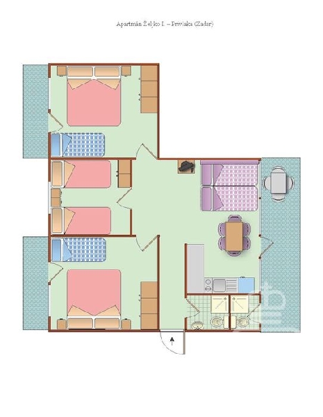 apartmán 1/4+2 (+2) pre 4 až 8 osôb (Željko I) - tri samostatné spálne, v dvoch z nich sú prístelky, dve kúpeľňe/WC