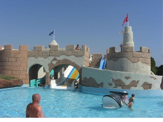 All inclusive: raňajky, neskoré raňajky, obed a večera formou bufetu, snack v bare pri bazéne a aquaparku v popoludňajších hodinách, neobmedzená konzumácia miestnych alkoholických a nealkoholických nápojov, nealkoholické nápoje a pivo v minibare, zmrzlina, aquapark, vybrané aktivity (step aerobik, vodná gymnastika, šípky, lukostreľba, boccia), sauna, turecké kúpele, miniklub, WiFi v lobby, 1x denne výmena plážových osušiek, trezor; hotel vyžaduje spoločenský odev pri obede/večeri u pánov, stolný tenis, vodný hokej, basketbal, minifutbal a plážový volejbal